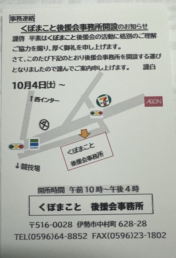 後援会事務所開設致します